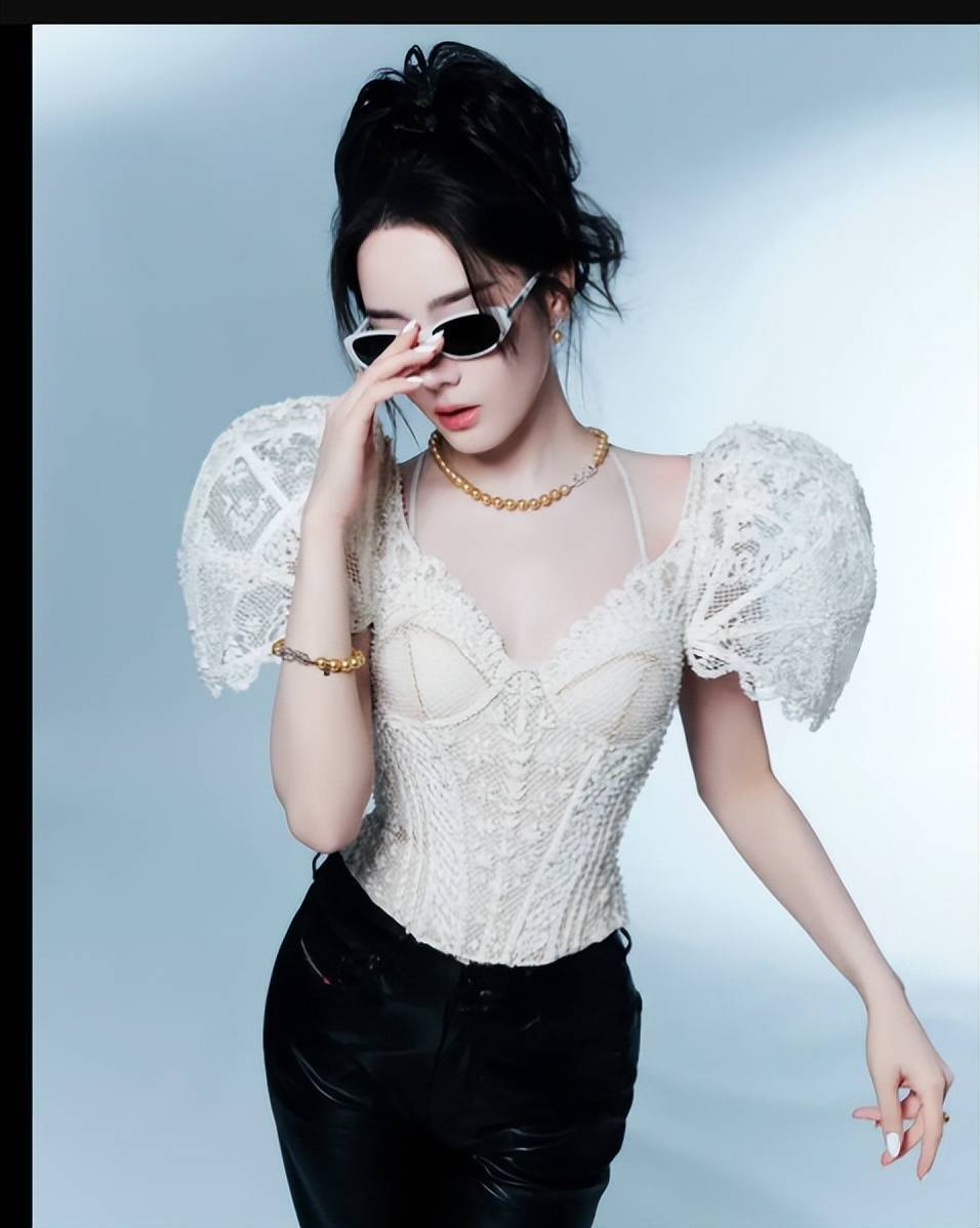 13日,迪丽热巴直播造型大片释出,穿着2026春夏高定出镜,廓形蕾丝的胸衣搭配黑色皮裤,完全是冷御复古的摩登女郎。迪丽热巴白蕾丝泡泡袖上衣搭配黑皮裤与墨镜,双手插兜,酷飒气场拉满。