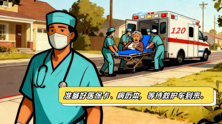 做好入院准备:准备好医保卡、病历本,等待救护车到来。