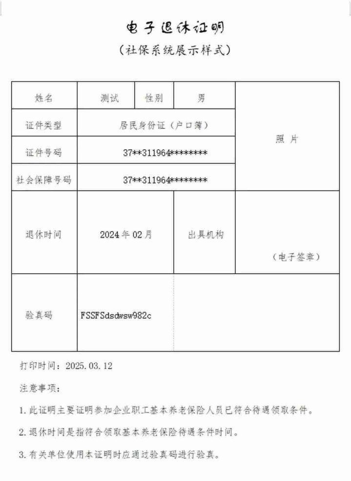 按照《山东省人民政府关于印发山东省数字政府建设实施方案的通知》要求和全面推动“无证明之省”建设工作部署,山东省企业职工电子退休证明(省本级)已正式启用。养老保险省直管企业退休人员可通过山东省社会保险公共服务平台、“爱山东”APP、社会保险自助服务终端等申领电子退休证明。具体操作如下: